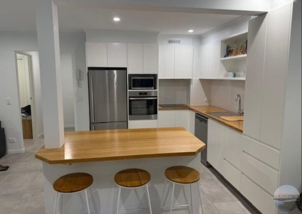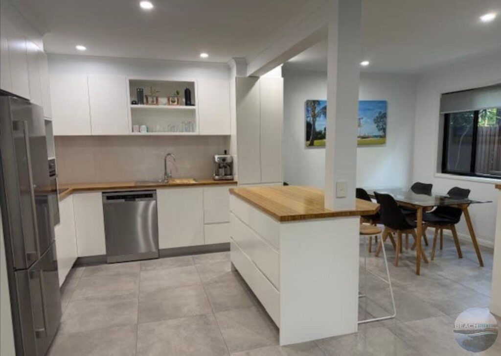 - Lovely modern kitchen with island bench, fridge supplied.